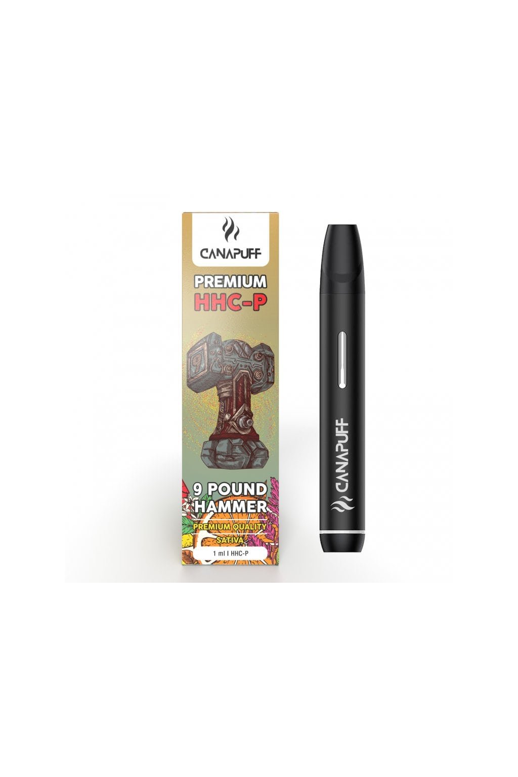Canapuff Premium 9 POUND HAMMER je jednorazová e-cigareta s vysokým obsahom až 96% HHC-P. Príchuť 9 POUND HAMMER ponúka silnú nálož ovocnej, tropickej chuti. E-cigaretu je možné dobíjať pomocou USB-C, nie je však možné ju opätovne dopĺňať. Obsah e-liquidu je 1ml, čo stačí na zhruba 450 poťahov. Prvotriedny destilát spoločne s terpénmi zaistí veľmi silný účinok. Môžete očakávať poriadny euforický zážitok.